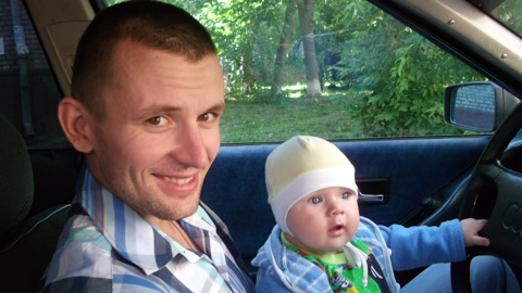 Сын помогает обметать машину )))