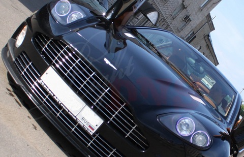 Aston Martin V12 Vanquish. Светодиодный тюнинг передней, задней оптики так же были установлены lambo — doors.