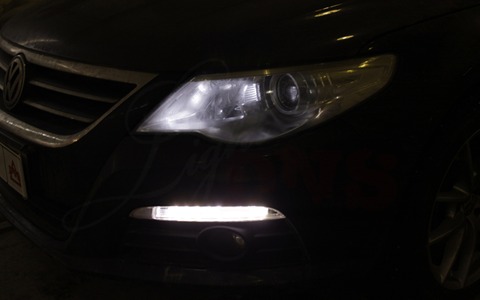 В фары установлены светодиодные модули DRL, собранные на базе отражателей GT-Block Small с использованием 1-ваттных светодиодов на алюминиевых платах.