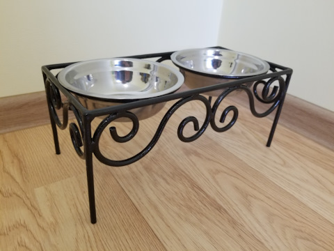 Сделал коту подставку для мисок. Прут катанка 8мм. Продолжаю практиковаться в электродуговой сварке:)