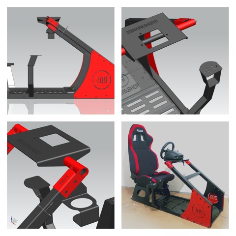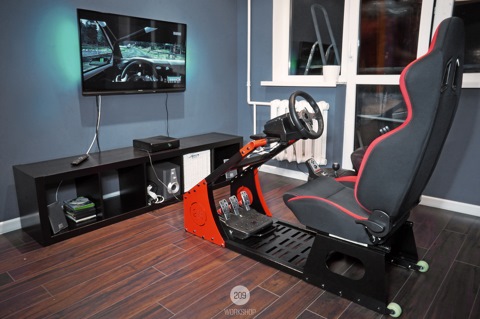 RS1 — гоночный автосимулятор от 209 WORKSHOP с обширными возможностями регулировки посадки водителя.