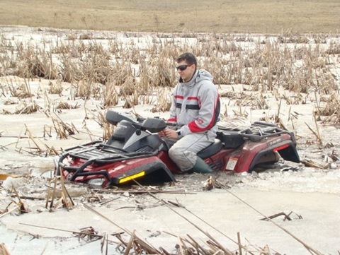 Немного обновлю фотографии квадроцикла. Ездил на деревне в Житомирской области. В субботу температура -8, в воскресенье +1, как раз нормально для того чтоб поездить поганять лисиц и пораскалывать лед…