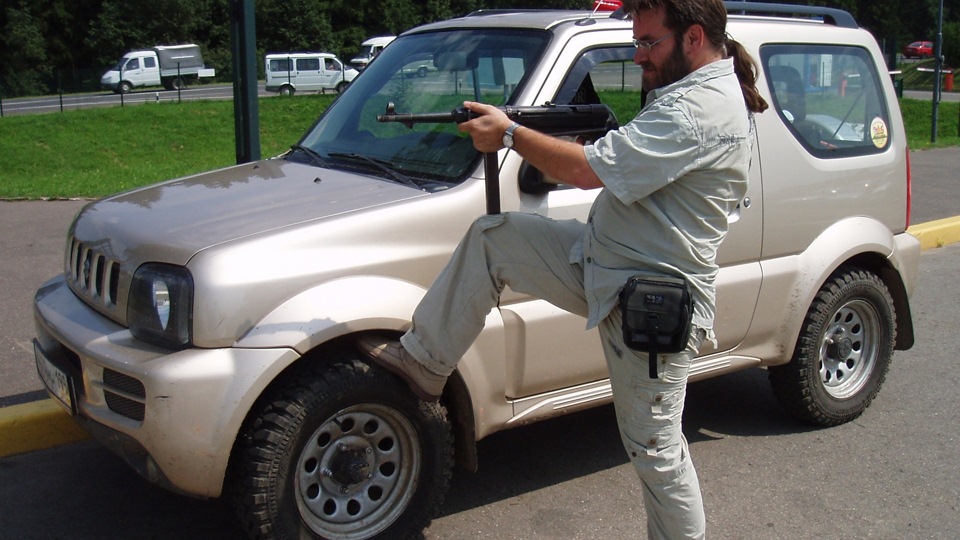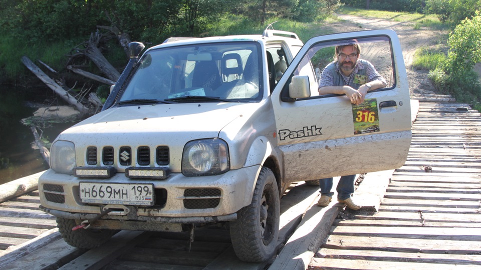 Езжу на Джимке каждый день, поэтому основной задачей является не ПЕРЕМОНСТРИТЬ: потому что идей всяких выше крыши, а как потом с этим ездить в суровые будни — медлено ездить "не умею". По той же причине СТРЁМНО участвовать в соревнованиях: не привык проигрывать, а выиграть и стать пешеходом — ВАЩЩЕ Ж0ПА! Таким образом остаётся довольствоваться покатушками и путешествиями с уходом с асфальта. С этой целью хочу спереди: тряпошную лебётку